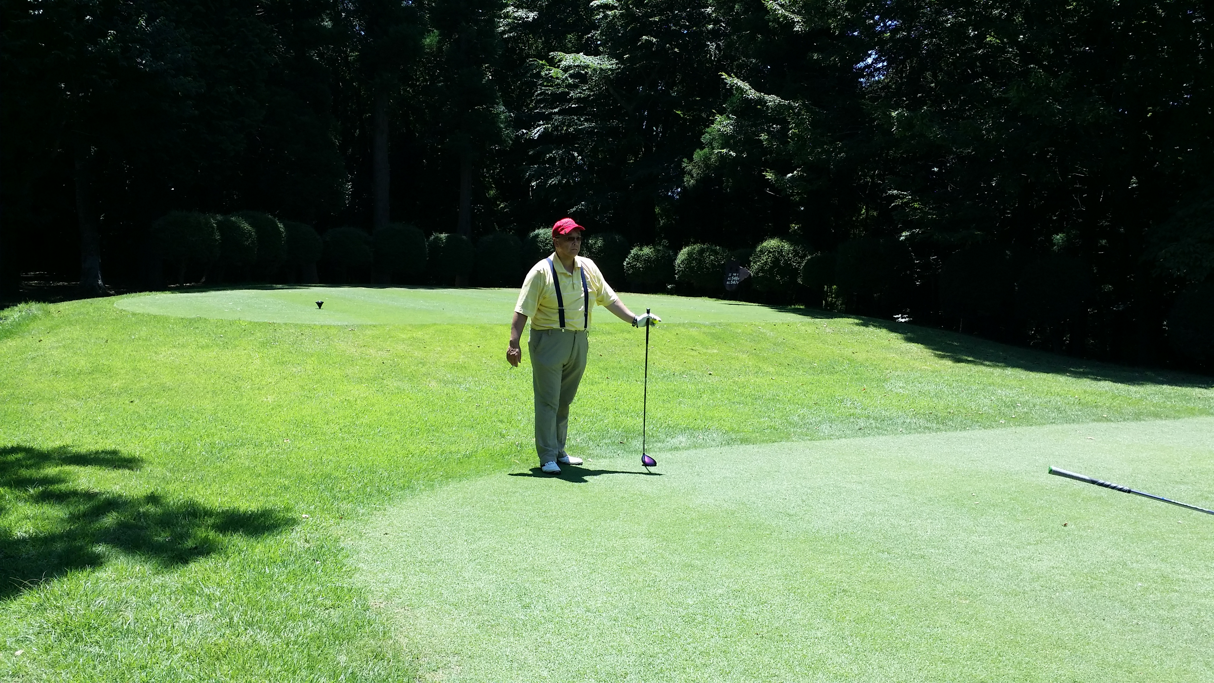 笑顔でスタートです。朝のうちはさほどでもなかったのですが、やはり暑くなりました。カートだから良かったですが、これが歩きだったらちょっと私たち老人(笑)には辛かったなぁ。