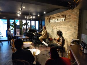 私のお師匠さんの堀江くんと組んでいる「ねじえもん」に今日は堀江君の盟友、ピアニストの柳君が加わったライブでした。
