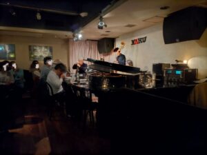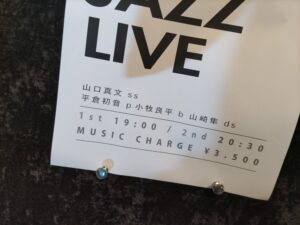 「今日は事情があってソプラノサックスだけでやります。」とのことでした。成田社長に聞いたら、なんかギックリ腰で重たいテナーサックスを持ち歩くのがつらいんだそうで(;^_^A。お体を大事にして頂いて、これからもずっと素晴らしい演奏を聴かせて頂きたいですね( ´∀` )。また宜しくお願い致します<(_ _)>。