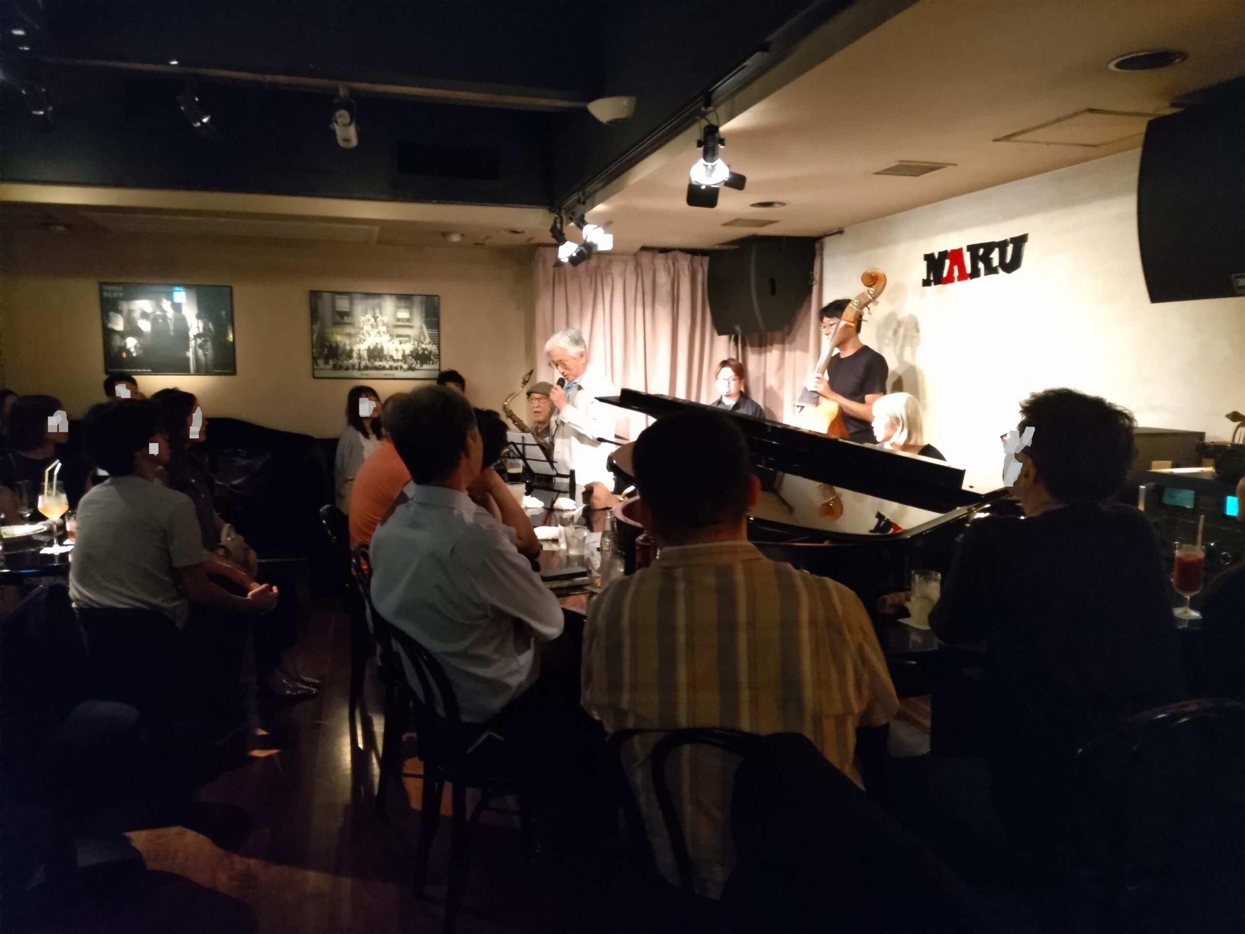 「今日は事情があってソプラノサックスだけでやります。」とのことでした。成田社長に聞いたら、なんかギックリ腰で重たいテナーサックスを持ち歩くのがつらいんだそうで(;^_^A。お体を大事にして頂いて、これからもずっと素晴らしい演奏を聴かせて頂きたいですね( ´∀` )。また宜しくお願い致します<(_ _)>。