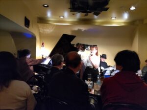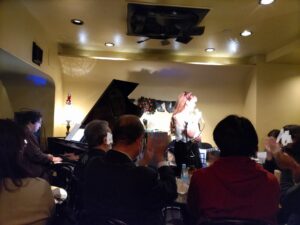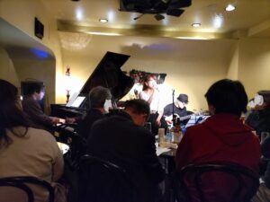 この夜は珍しく、有名なフュージョンバンド、「ディメンション」のギタリストの増崎さん、そして「カシオペア」のキーボーディストの安部さんがバックを務めるということで、ちょっと興味があったんで・・・、私も学生時代はジャズなんぞ全く知らず、フュージョン大好きでしたから( ^ω^)・・・。