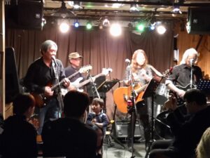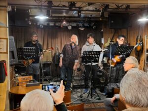 両サイドの君島、内海、両君の間に一人、そして後ろのドラムとキーボードの二人が混ざった混成バンド。ビートルズナンバー中心ですが、やっぱり皆さんお上手(*_*)!!!大いに盛り上がったステージとなりました( ^ω^)・・・。