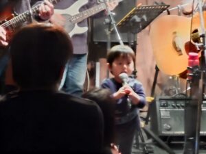 そして素晴らしいゲストボーカル登場!!!左にいる素晴らしいギターソロを聴かせてくれた方のお孫さんなんだそうで( ^ω^)・・・。