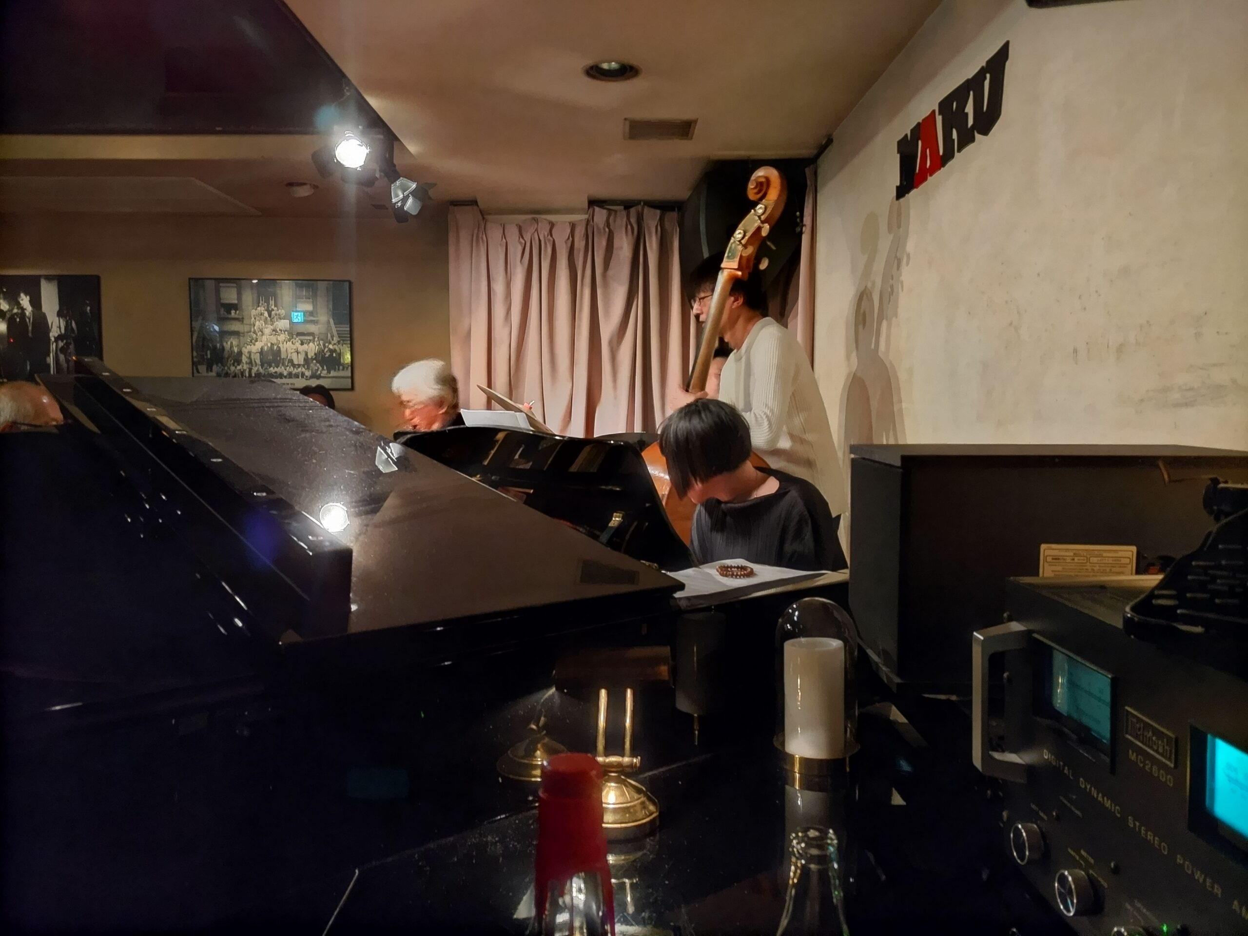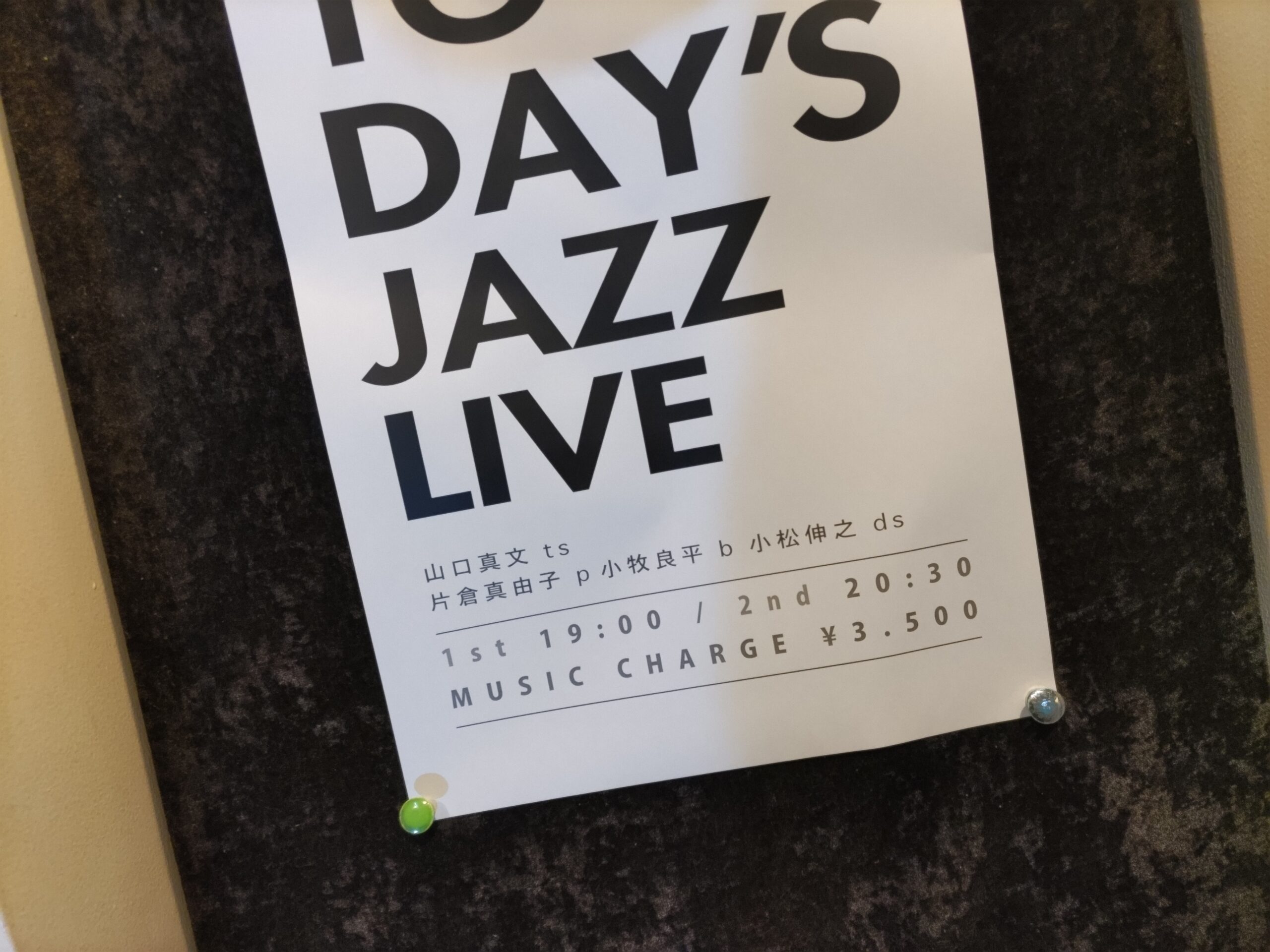 原則として演奏中は撮影できませんので・・・、お店が空いてればたまにはコッソリ撮っても、まぁ眼をつぶって貰えますが、さすがに今日は私も撮影自粛です・・・(;^_^A、ちょっとだけ・・・<(_ _)>。やっぱり真文さんのサックスは痺れますΣ(゚Д゚)。片倉真由子さんのピアノも素晴らしかった( ´∀` )。ジャズを聴きなれたジャズ大好きなお客さんも多かったようで( ´∀` )、大きな声援に包まれた1セット目の終わりに家路につきました。
