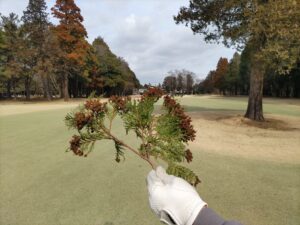 後藤くんが落ちていた枝を拾って見せてくれました。これは杉ではないようですが、杉以外にも花粉症の方々を悩ます木々があるんでしょうね・・・(-_-;)。皆様無事にこれからの季節を乗り切ってくださいますように・・・<(_ _)>。