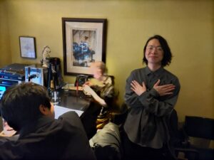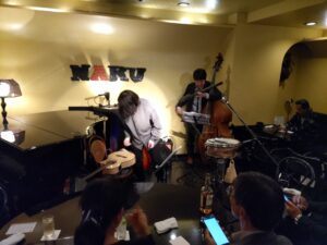 三人ともホントに楽しそうに演奏しますから、楽しさがお客様たちも伝わってくる素晴らしいギグでした( ´∀` )。体の弱い(;^_^Aわたくしはいつものように1セット目の終わりに席を立ちます。ぜひまたここでこのバンドの演奏を聴きたいものですね(^^)v。・・・それにしても・・・、自称ジャズシンガーの私ですが、知らない歌ばかりだったなぁ・・・(;^_^A。それもいい曲ばかりでした( ´∀` )。私もまだまだ知らないことばかりです(笑)。だからこそ・・・、面白い(^^)v。是非また宜しくお願い致します。<(_ _)>